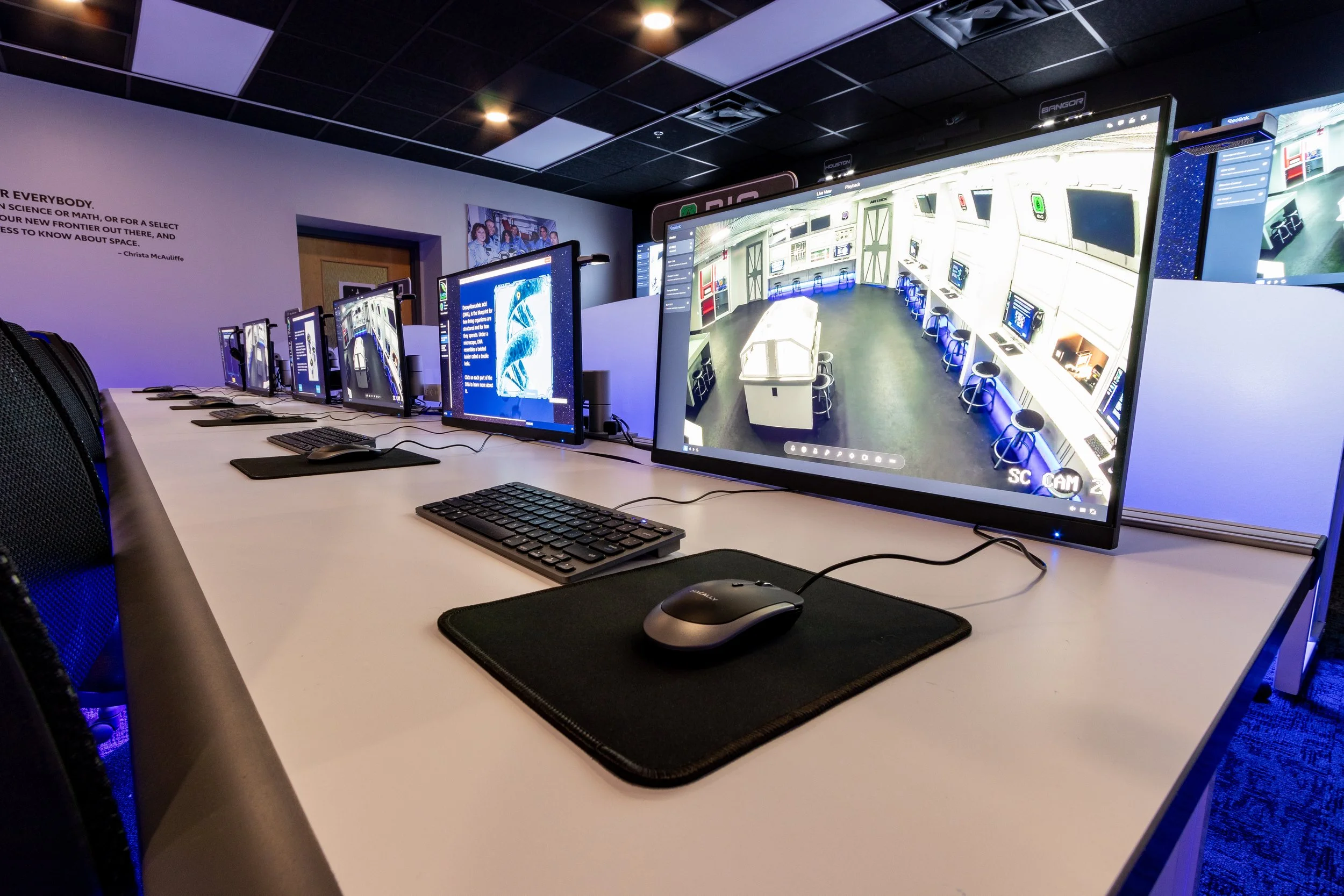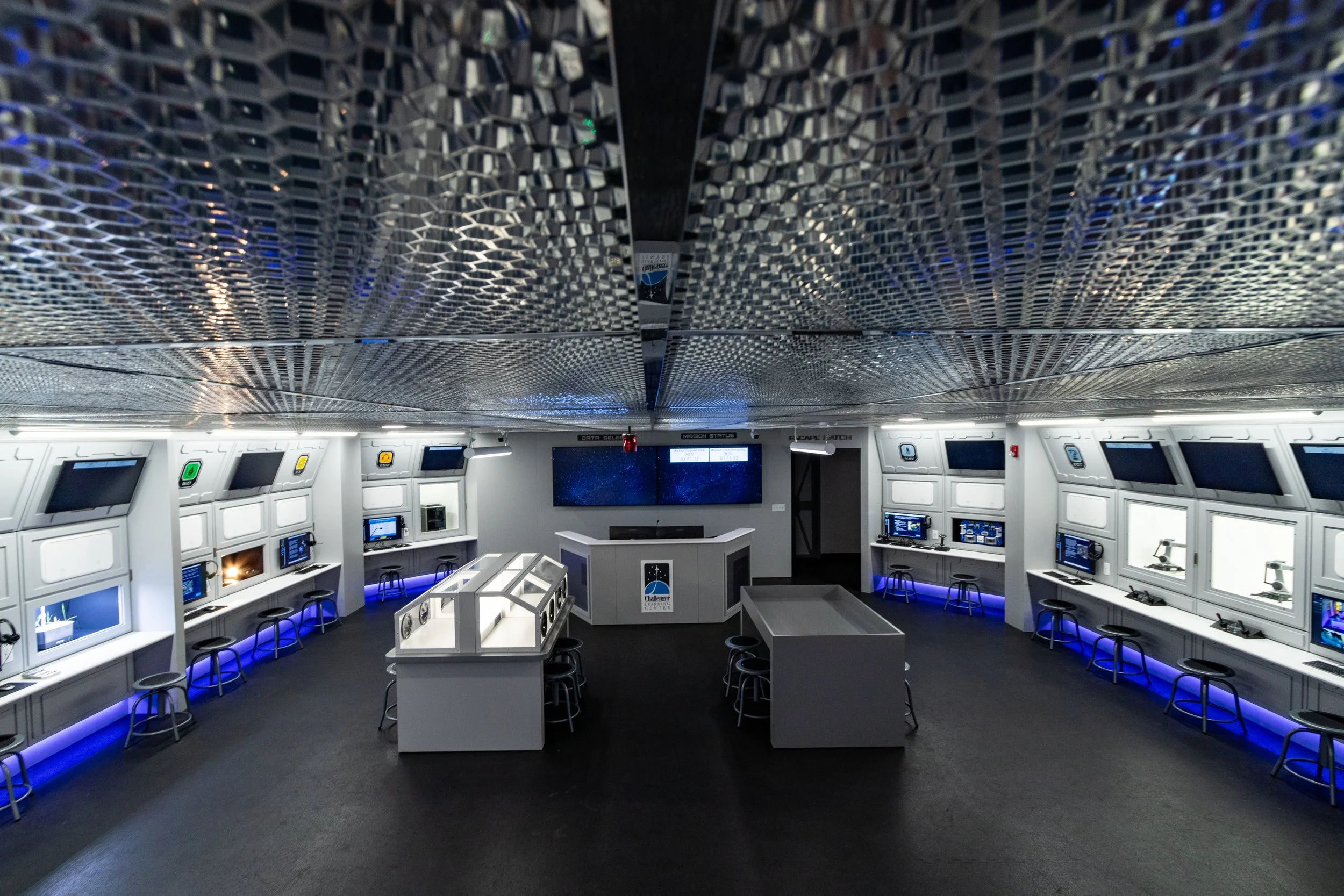 Step into a high-tech environment designed to inspire collaboration and curiosity. Mission Control features interactive consoles, large displays, and a dynamic layout that encourages engagement.